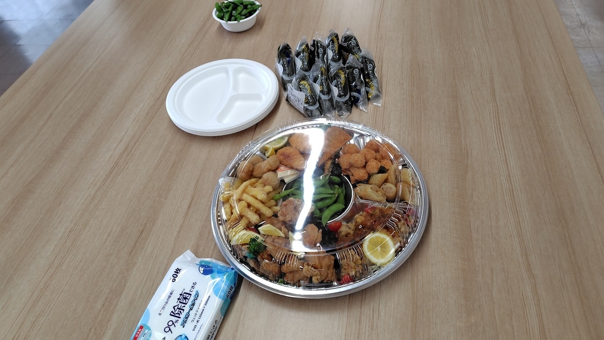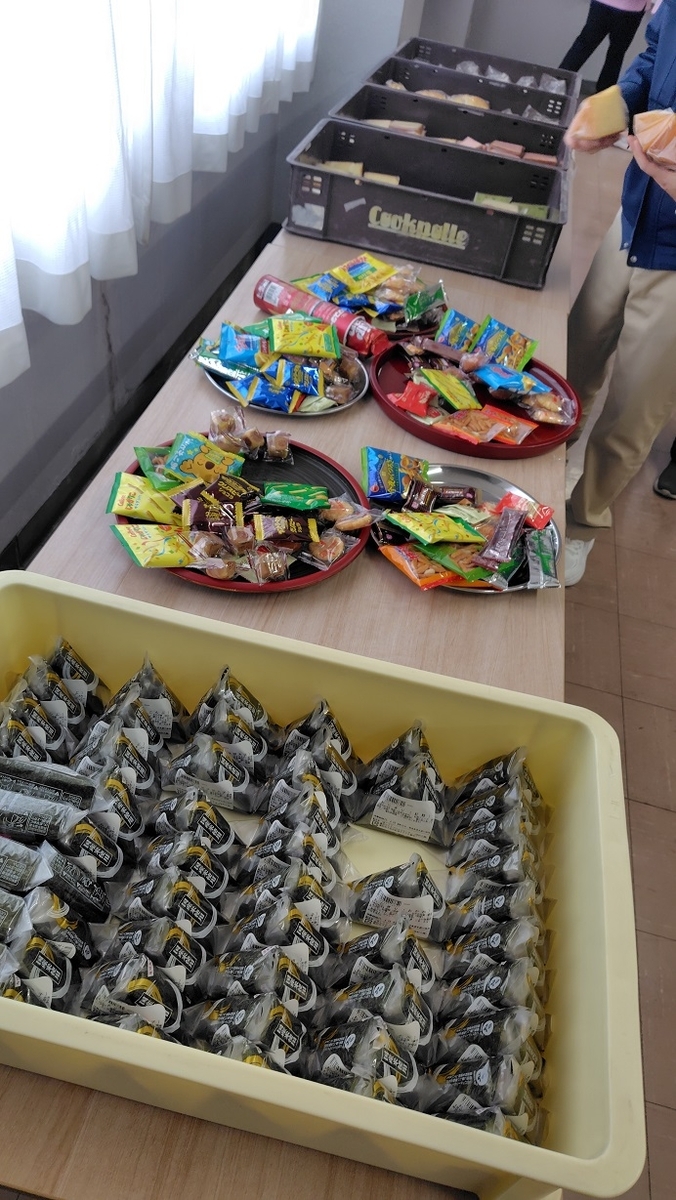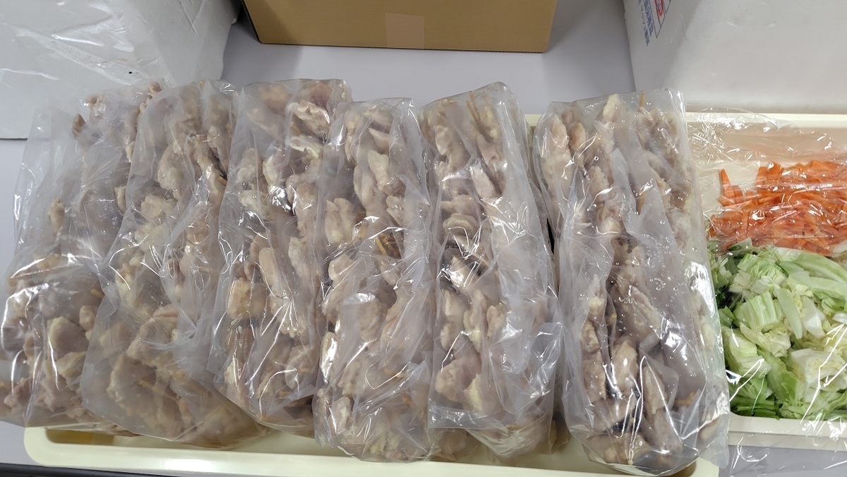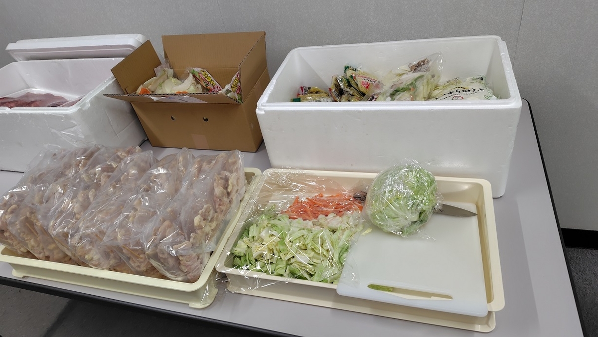上記写真以外にもまだまだ沢山準備してて、焼き鳥500本、肉20kg、おにぎり200個、パン200個、お菓子、オードブル、焼きそばなど