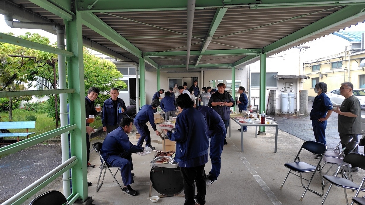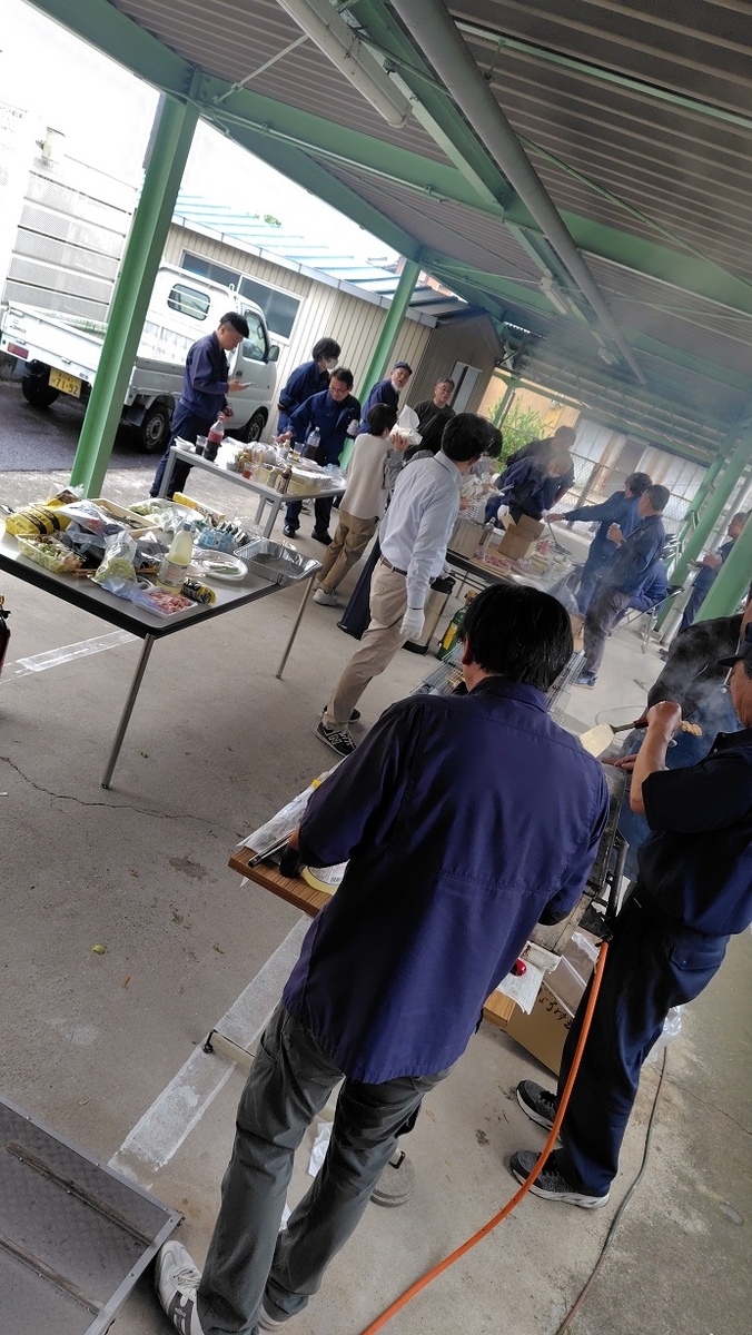 BBQ大会の前は幹部会で社長より色々と話があり、各部課長から今年度の抱負など話を行いました。その後、BBQ大会。