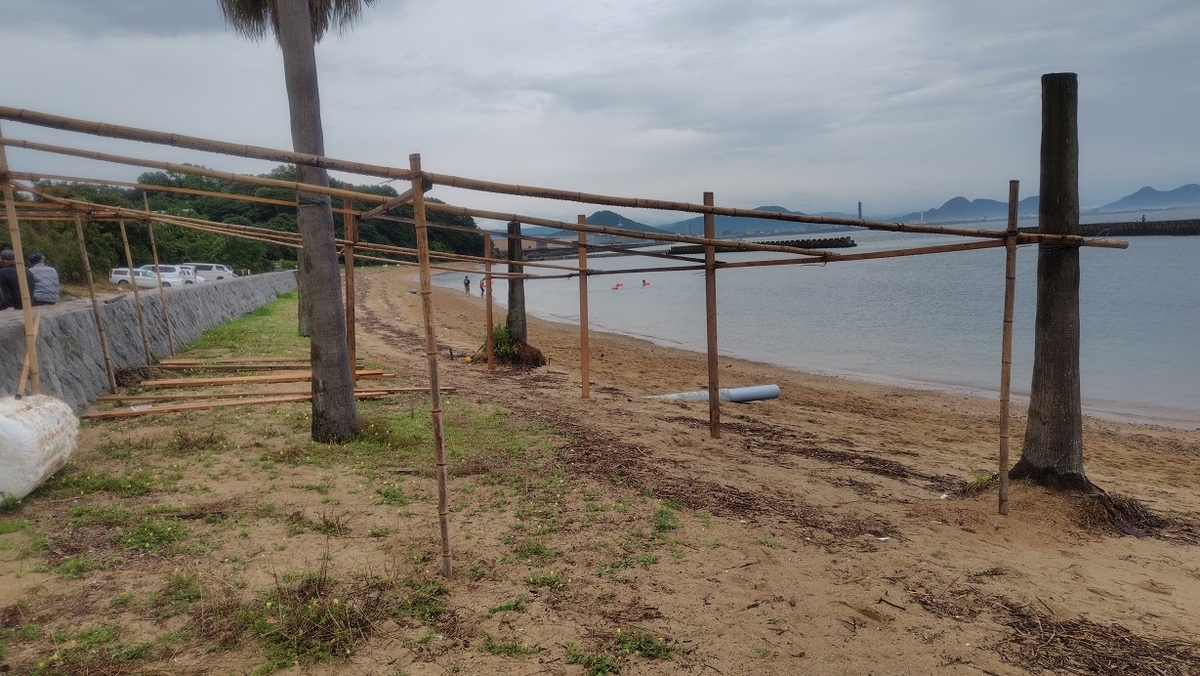 この日は海の家の段取りをしていました。