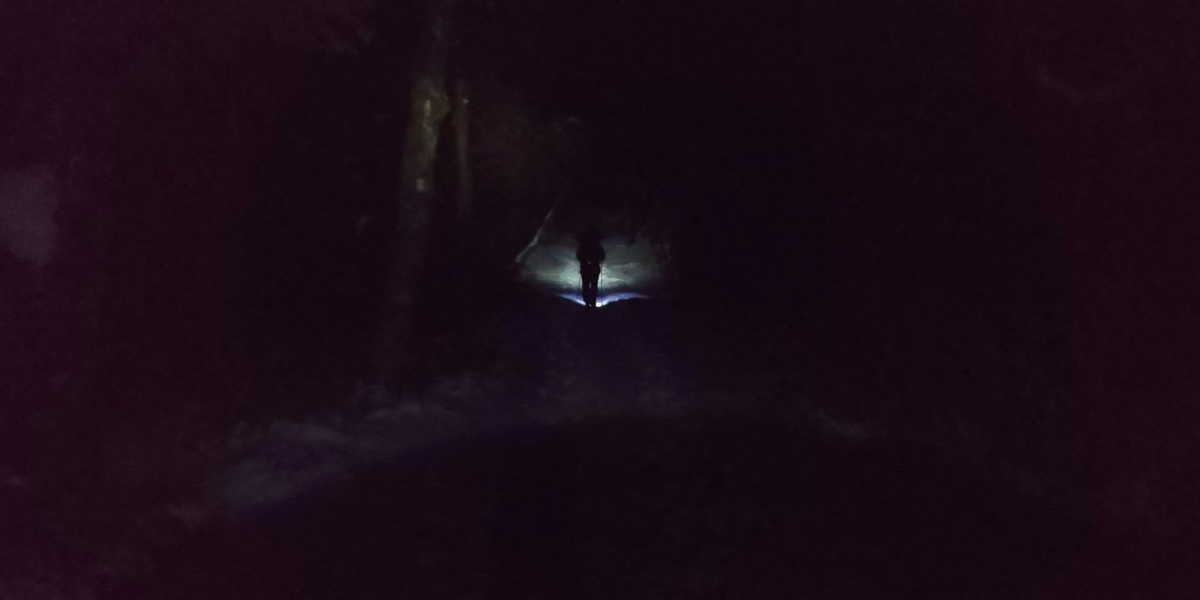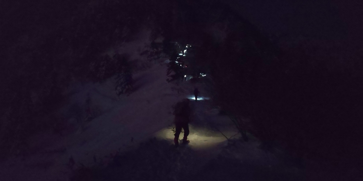 ヘッドライトを付けて登っている人たちがいい感じで見えます。