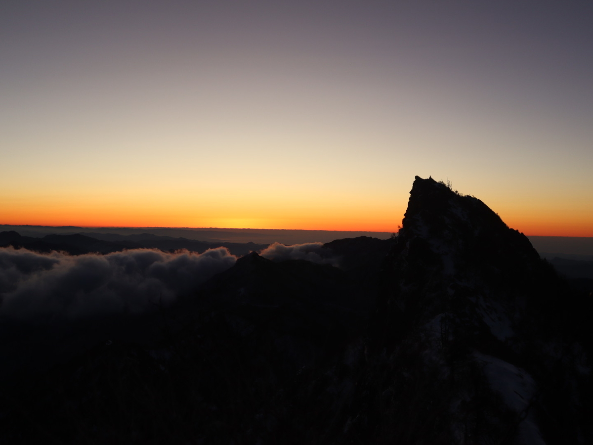 少し明るくなってきたので石鎚山の形も見えます。