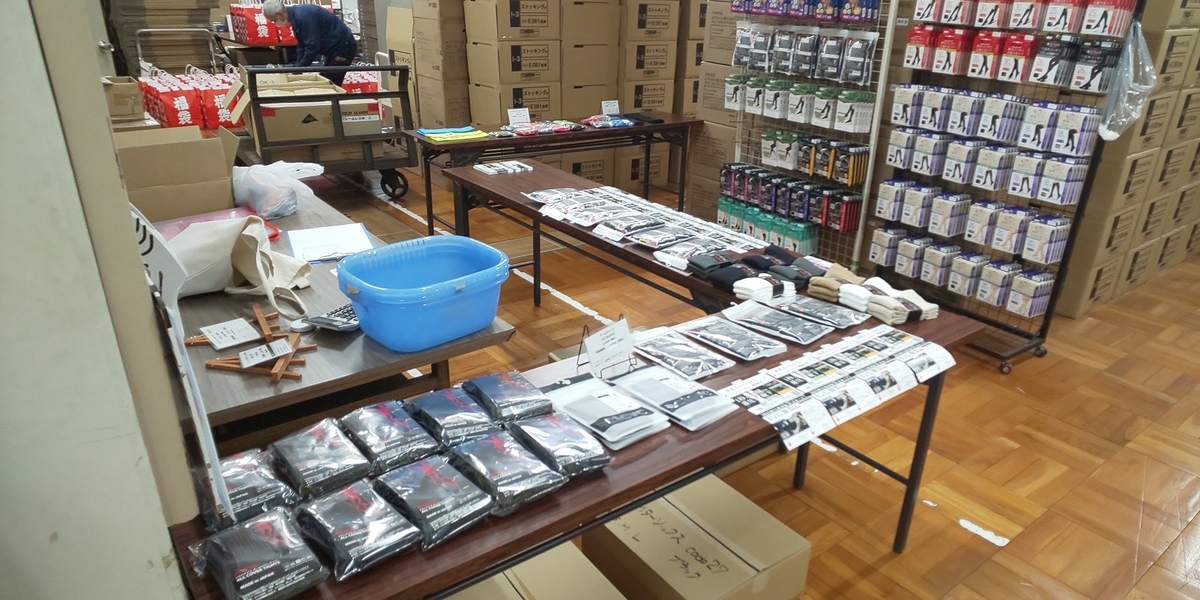 2年前から自社工場で即売会を行い始めてから、着圧コーナーを作っています。