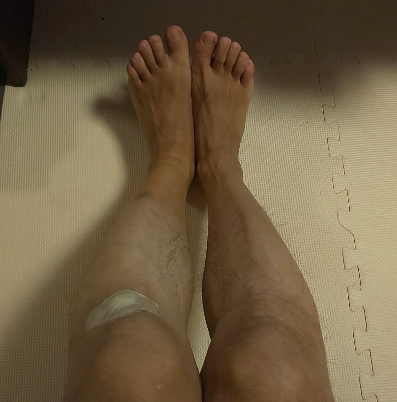 ふくらはぎの周を測ってみると、34cm。いつもは36cmくらいあるので2cm位細くなっていました。右足が効き足でふくらはぎも左に比べると0.5cmくらいは周が太いです。