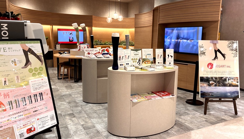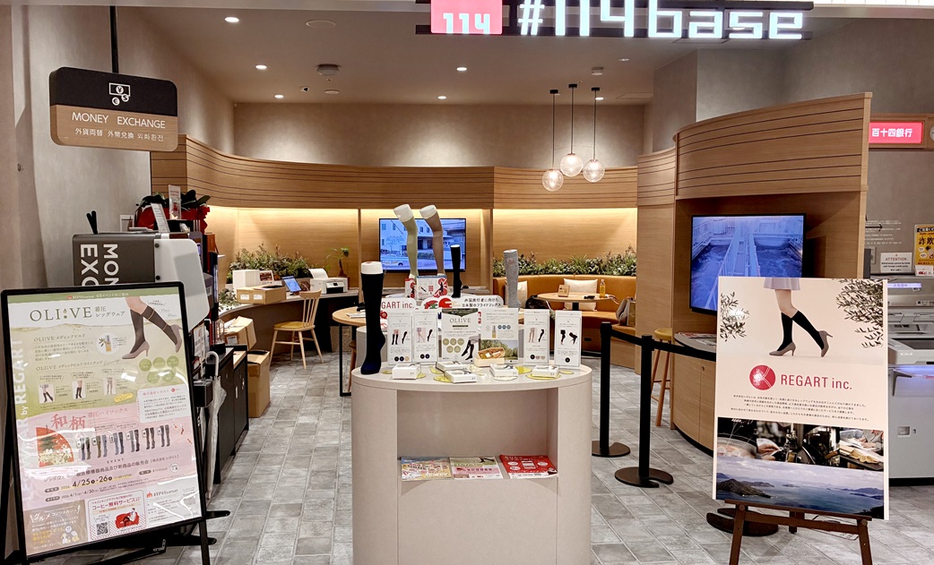 JR高松駅隣接の商業施設TAKAMATSU ORUNEの北館1Fにある#114baseで㈱レガルトの商品を4月末まで展示しています。