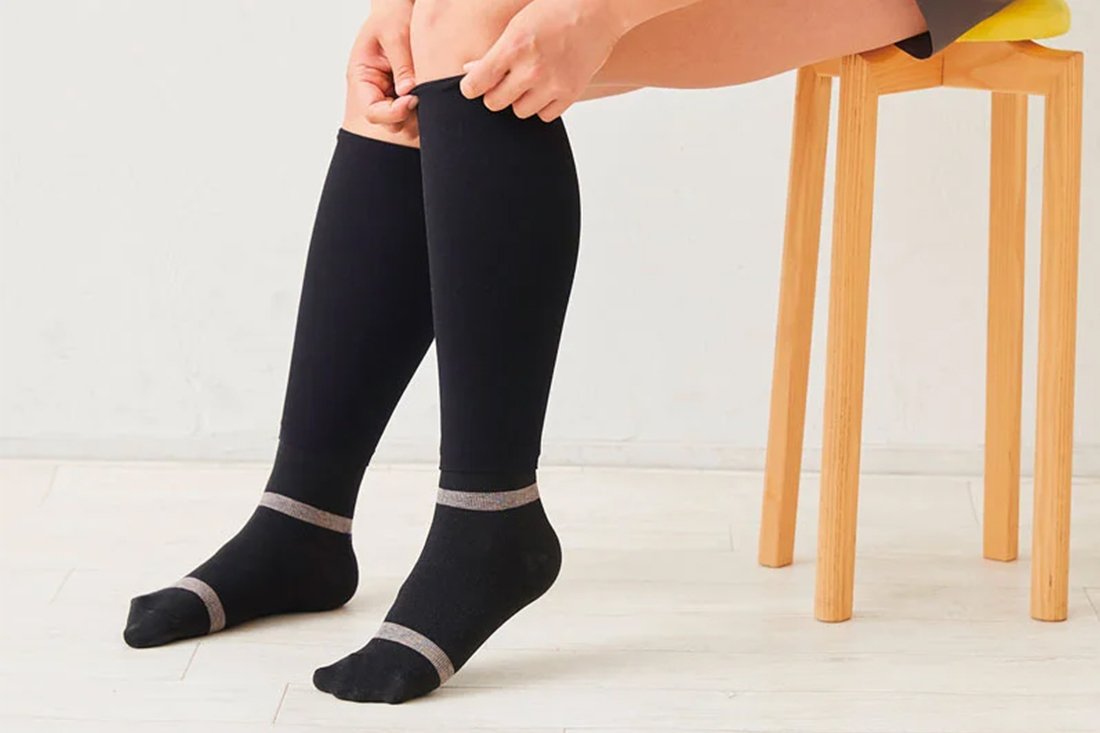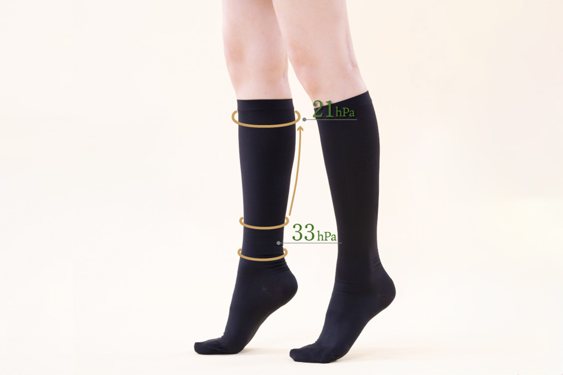 弾性ストッキング、着圧ソックスなどの着圧商品は年間100万足以上の生産実績があります。