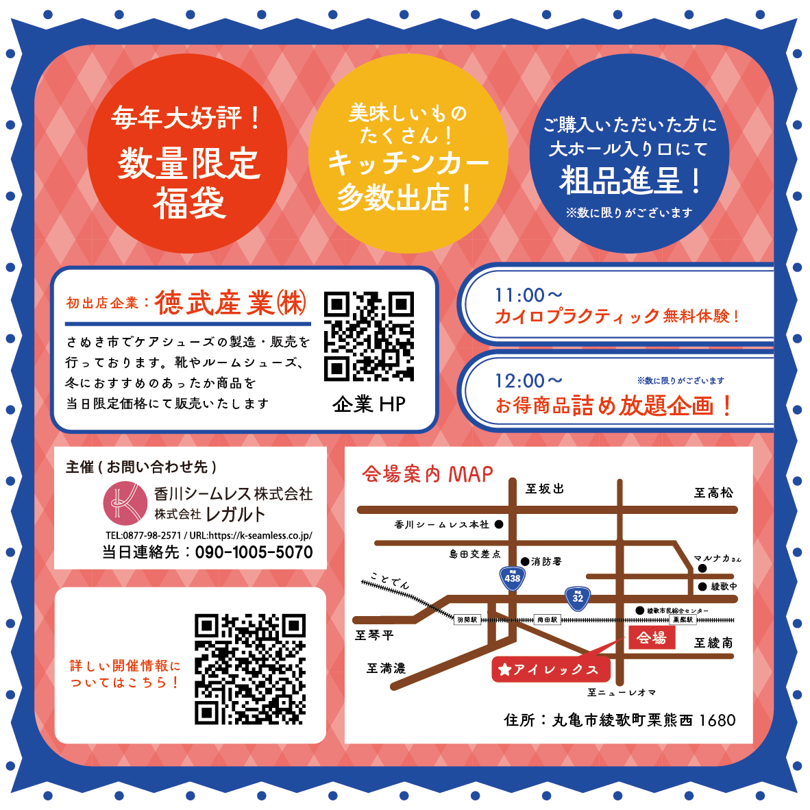 例年同様、弊社香川シームレス㈱で生産したストッキングやタイツはもちろん、ソックスやサポーター、弾性ストッキング、着圧ソックス、婦人服やインナーなどを販売します。